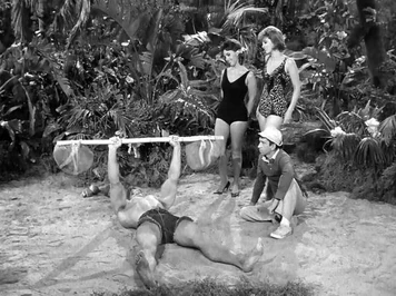 When the Skipper spots Gilligan lifting coconut shell dumbbells, he urges him to try a heavier bamboo-and-boulder weight. Down at the beach, Duke performs a feat of strength lifting the girls from his shoulders when he hears the helpless cries of Gilligan who has trapped himself beneath the bar. Duke frees Gilligan then demonstrates the lift himself as the girls watch enraptured. After Gilligan fails again, Duke and the girls head back to the beach leaving Gilligan alone.