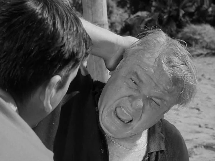 The U.S. Navy will be doing maneuvers near the island so the Skipper and Gilligan begin work on a signal tower to contact them. When Gilligan knocks loose a pole that hits the Skipper, he loses his identity and memories of his fellow Castaways as well as the fact that they're stranded. The Professor immediately recognizes this as amnesia, and Gilligan tries to jog his memories with some of his possessions. Meanwhile, the Skipper doesn't recognize Mary Ann and even flirts with Ginger who runs away from him. The Professor re-introduces him to the Howells, who try bribing him to get his memories back. The Professor reminds them that time is of the essence since the Skipper is the only one who knows semaphore signals to communicate with the Navy while they're in the area. The Howells take it upon themselves to knock the Skipper in the head that night to restore his memories, but they only knock Gilligan around as he switches hammocks with the Skipper in their hut. The following day, the Professor attempts hypnotizing the Skipper to get his memories back, briefly regressing him back to his childhood and then not progressing him forward enough to the future. Believing it's World War Two again, the Skipper sees the other castaways as Japanese soldiers and flees into the jungle. While the Professor and Gilligan look for him, the Howells try contacting the Navy themselves but are taken hostage by the Skipper using the rifle left behind by the Japanese Sailor. He also takes the girls hostage despite their efforts to reason with him. Locking everyone up in one of the caves, he tries contacting reinforcements with the Castaway's radio, thinking its a transmitter. Eventually, the Professor and Gilligan come looking for everyone, only to get captured themselves. With the Navy ships right off shore, Gilligan makes one last effort to communicate with the Skipper as his "little buddy" but gets chased back through the bamboo bars of the cave. The Professor makes one last try to hypnotize the Skipper again, but Gilligan and Mr. Howell are so close that they're the only ones hypnotized. As they start arguing, the Skipper enters the cave to quell their argument, getting knocked to the head by Gilligan with a rock. Knocked back for a second, he gets his memories back. Unsure what's going on, he steps forward and knocks Gilligan and Mr. Howell's heads together to stop their argument. All three of them have their true identities back, and before the Skipper can ream them for fighting, everyone rushes in and hugs him before he knows what's happening. The following day, Gilligan searches for ships from the lookout tower, but doesn't see any. Meanwhile, the Skipper is remorseful for fouling things up, but the Professor tells him it wasn't his fault. Just then, Gilligan tumbles from the tower, and they rush to help him. As Gilligan lifts his head up, he doesn't recognize them because now he has amnesia.