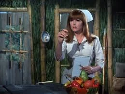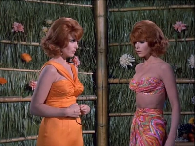 Ginger once sang in a club in Waikiki, Hawaii, and played a nurse in one episode of Ben Casey. She had minor roles in a remarkable number of Hollywood pictures, adding that she has done a few prison and haunted house pictures. At the time of the shipwreck, Ginger was scheduled to play the lead role of Cleopatra in the Broadway production of Pyramid for Two - a part she's convinced would have rocketed her to stardom. Since she only brought one gown with her, she sews other gowns together from Mrs. Howell's remnants and fabric that washes ashore. She even made one dress from Gilligan's duffel bag. She can't swim, and she can barely cook on her own without Mary Ann's help, once trying to serve fish pie to her fellow castaways with the bones intact. She's always assisting the Professor (the only man on the island she truly desires), later confessing he only appreciates her for her mind. She is often entertaining the other castaways with her singing and acting to keep morale up on the island, or nursing the other castaways back to health with the Professor. Her one regret in life is that she didn't pursue a career in nursing. Ginger shares a hut with Mary Ann. They are best friends, and they fish, take mud baths, sew, cook and do the laundry together.