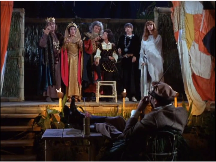 The Castaways develop Hamlet as a musical in order to show off Ginger's talent to Harold Hecuba to get them rescued. Gilligan is Hamlet, the Skipper is Polonius, father of Ophelia, the Howells are Hamlet's parents, Ginger is Ophelia, Mary Ann is Hamlet's friend, Laertes, and the Professor is the narrator. Hecuba is intrigued by the play at first, but he takes it over and ultimately, all the roles himself to show how them how to do the play, exhausting himself in the process. By morning, he takes the idea for himself and leaves the Island with it.