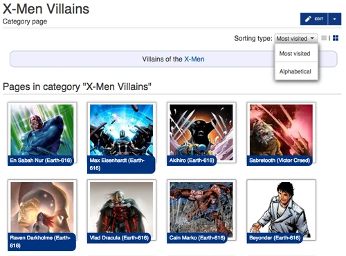 - In the exhibition image mode, every page in the category is displayed as an image with a link. Images can be displayed in alphabetical or most visited order.