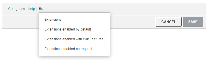 [[Category:Help]]will add a page to the Help category. - In Visual Editing mode, you can click on the Categories button in the drop-down menu on the right. This opens the category dialogue, which allows you to edit categories, add new ones, and optionally customize how the article should be sorted.