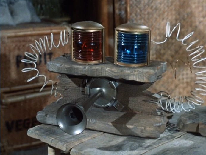 The Professor's lie detector appears to operate off a different principle of brain waves. It is unclear exactly how this is supposed to have worked as the gourds have no internal connections to the subject's head and appears ill-fitting on all except the Skipper. It is also unclear as to what logic circuitry is used to determine guilt or innocence when sounding the horn.