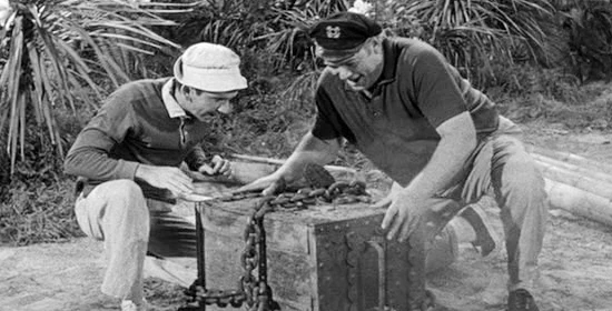 | Gilligan digs up a treasure chest while digging a barbeque pit for Mr. Howell, but the matter of ownership is in question. | |