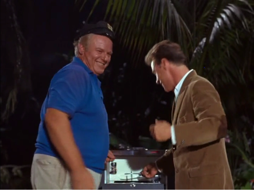 The Castaway's Record Player is a hand-cranked invention of the Professor to play the number of records inexplicably on the island, although it makes intermittent appearances with an equally inexplicable record player that appears to run on electricity (although no explanation is given as to how this is possible). It's entirely possible the records and accompanying record player are the property of the ever-prepared Howells. The island version is a decidedly more plausible hand-cranked player much like the pre-electric gramophones and Victrola players of the First Century. It's been used to highlight the Castaways parties for morale and Ginger's performances on the stage as well as the incidental music of their beauty contest. Ginger also uses it as background music to sing to Gilligan.