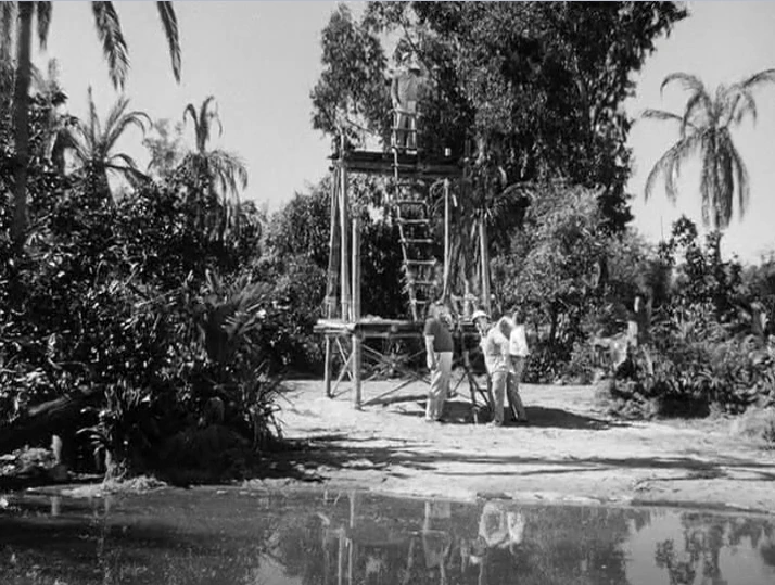 The lagoon as it appears in the credits in Season 2 & 3. (The curved roof of Soundstage 3 can be seen in the top left.)